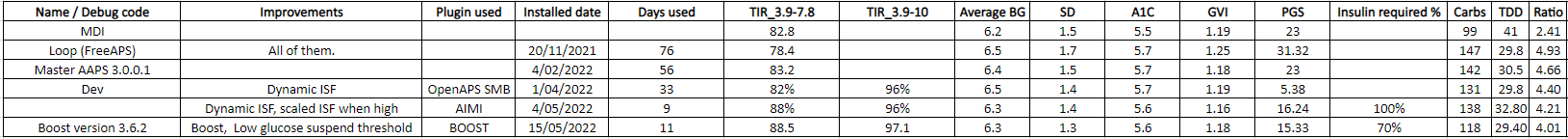 Full profile review – Once the basal profile has been updated, I will check my CR (carb ratio) and CRR (carb rise ratio). No need to check ISF (insulin sensitivity factor) as its calculated in Android APS. I will need to be on the look out for blood sugar dips two or more hours after meals as I may need to reduce the Dynamic ISF Adjustment factor.