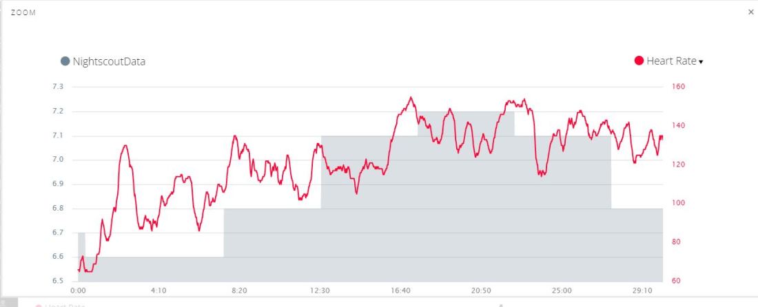 An interesting development from moving over to a pump has been exercise. Whilst resistance training hasn’t resulted in any issues controlling blood glucose (BG), aerobic (cardio) training seems to be heavily impacted by the fast acting insulin being used as basal. My previous strategy was to have no insulin on board (IOB) and fasted, this approach doesn’t work as well when pumping. My ability to stay in range during runs are improving by including fast acting carbs (preferably in liquid form) prior to running, but there is still much tuning to be done. My strategy yesterday was ingesting about 25g of carbs before the run and injecting .3 units just prior to running. I wanted to try this because it was raining and I wanted to disconnect the pump when I ran, as apposed to how I was managing it by reducing basal (50%) 30 min prior to running and for the duration of the run. It was a terrible idea!