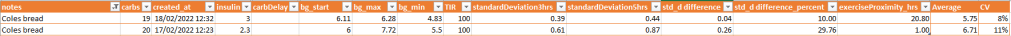 To analyse this I use three (3) values, standard deviation, time in range (TIR) and Coefficient of the variation. These three (3) values will assist you in determining how good or bad a meal was for you in terms of blood sugar impact (BGI).